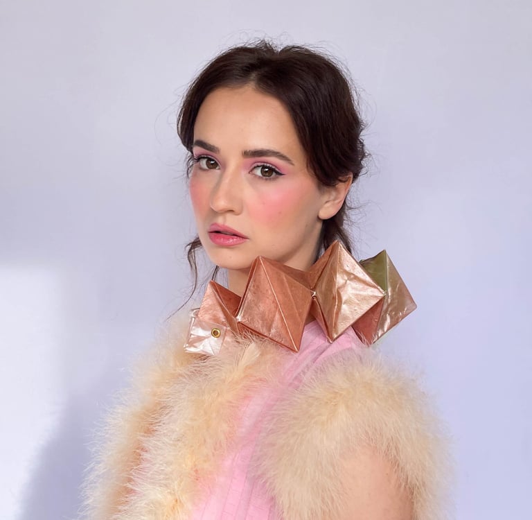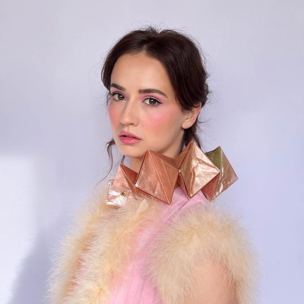 Leksi Kostur is a biodesigner whose work explores how material innovation can connect design with nature. Trained at Central Saint Martins in London, Leksi creates wearable works and ceremonial designs using biodegradable materials she develops from seaweed and other natural sources. Her practice bridges design, social science, and material research, merging scientific inquiry with storytelling and symbolism. She has applied her material knowledge to design displays, sets, and stages with re:right design—the UK-based studio she co-founded—and has showcased her work at Glastonbury Festival, New York Design Festival, London Design Festival, and the Science Museum London. In addition to her design practice, Leksi has lectured in biodesign at leading institutions, including University of the Arts London and the Royal College of Art. Rooted in her Pacific Northwest upbringing, Leksi’s work reflects a deep respect for natural systems and the belief that design can bring us into alignment with them.